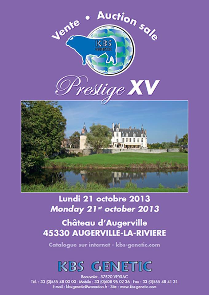Beauvalet-Plaine Maison Group in partnership with KBS Genetic have organised a special show annd sale to be held at the spectacular estate of Chateau d'Augerville near Paris. The show will take place on sunday 20th of October with the sale commencing at 15:00 on the monday. 30 Limousin fatstock cows & heifers are to be offered for sale by Beauvallert - Plaine Maison Group. KBS Genetic have selected 13 pedigree Limousin cattle of high genetic value including a JACOT son from the Patterau herd.