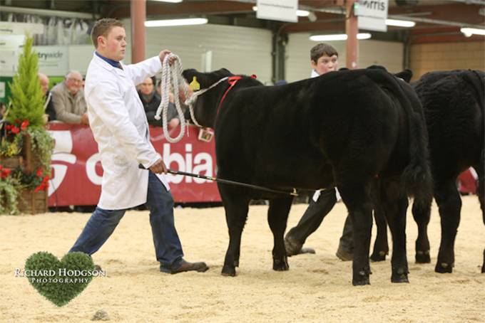 Champion Baby Heifer and Reserve Overall Baby Beef at the Welsh Winter Fair went to 'Katie' a 412 kg British Blue sired heifer out of a Limousin x Angus dam. Bred and exhibited by Wyn Williams, Penrhyn, Llanfwrog, Holyhead, Anglesey this heifer was also Champion Baby Beef at the Anglesey Winter Fair. This smart & showy all black heifer was sired by Widewath Winston a Netherwood Umpire son. Katie will be kept for next summer's show circuit and will be retained for breeding at Penrhyn. Widewath Winston was sold by Owain Llyr as a promising young bull to Wyn Penrhyn.